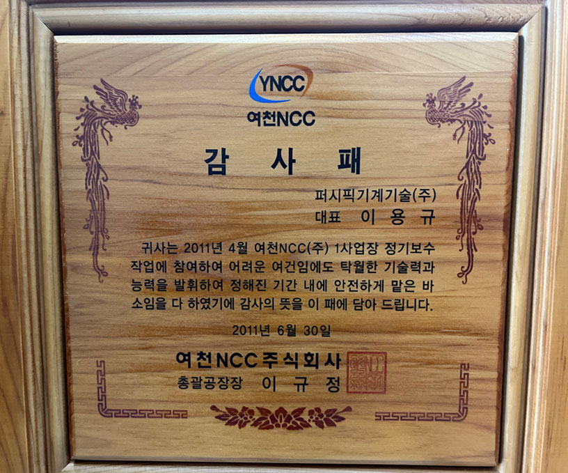 여천 NCC 감사패 2011년 6월 30일